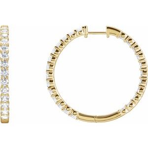 14K Yellow 4 CTW Lab-Grown Diamond Inside-Outside Hinged 36 mm Hoop Earrings