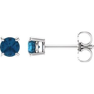 14K Yellow 4 mm Round London Blue Topaz Earrings