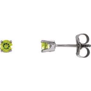 14K White 3 mm Round Peridot Youth Birthstone Earrings