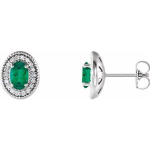 14K White Emerald & 1/5 CTW Diamond Halo-Style Earrings