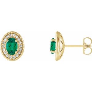 14K Yellow Emerald & 1/5 CTW Diamond Halo-Style Earrings