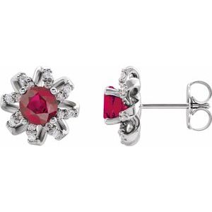 Platinum Ruby & 1/8 CTW Diamond Halo-Style Earrings