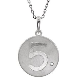 Sterling Silver .005 CT Diamond Numeral 5 Disc 18" Necklace