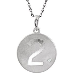 Sterling Silver .005 CT Diamond Numeral 2 Disc 18" Necklace