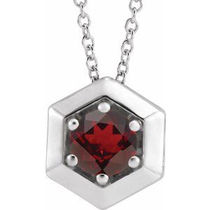 Sterling Silver Mozambique Garnet Geometric 16-18" Necklace