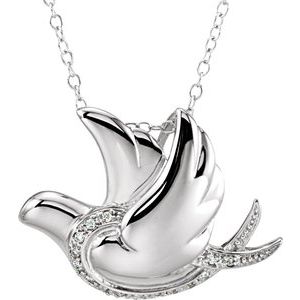 Sterling Silver 1 mm Round Cubic Zirconia Infinite Spirit Dove 18" Necklace