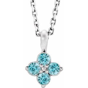 Sterling Silver Youth Imitation Blue Zircon 16-18" Necklace