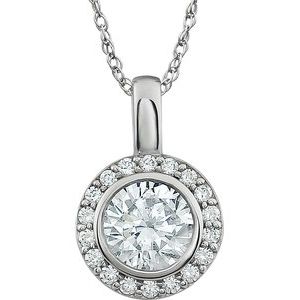Sterling Silver 7 mm Round Cubic Zirconia Halo-Style 18" Necklace