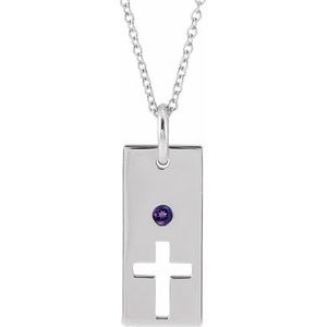 Sterling Silver Amethyst Cross Bar 16-18" Necklace