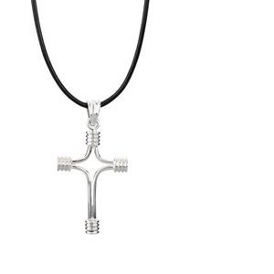Sterling Silver 33.75x23.25 Tubular Cross with 18" Black Leather Cord & Box