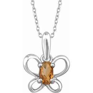 Sterling Silver 4x3 mm Oval November Youth Butterfly Birthstone 15" Necklace