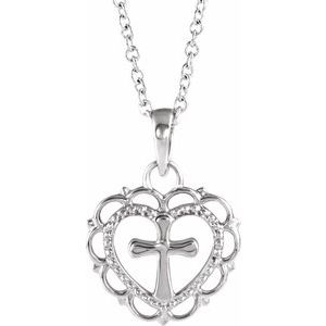 Sterling Silver Youth Heart with Cross 16-18" Necklace