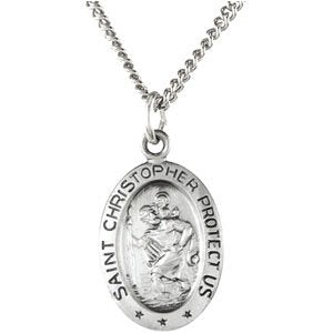 Sterling Silver 12x9 mm Oval St. Christopher 18" Necklace