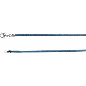 Light Blue 2.25 mm Silk 16" Cord with Sterling Silver Lobster Clasp