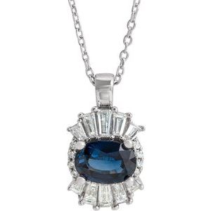 Platinum Blue Sapphire & 1/3 CTW Diamond 16-18" Necklace