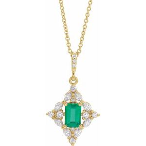 14K Yellow Emerald & 3/8 CTW Diamond 16-18" Necklace