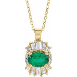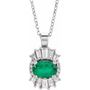 Platinum Emerald & 1/6 CTW Diamond Necklace
