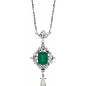 Platinum Emerald & 1 1/4 CTW Diamond 16" Necklace