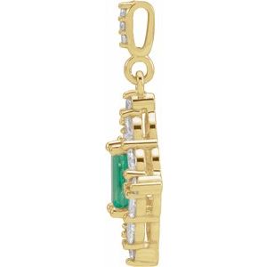 86990 / Pendant / Emerald / 6 X 4 Mm / 14K Yellow / Set / Emerald / I1, Ghi :: 3/8 / Polished / Halo-Style Pendant W/Diamond Accents