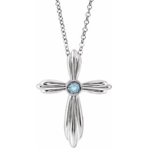 R42369 / Pendant / Set / Sterling Silver / Amethyst / Round / 2 Mm / Polished / Genuine Aquamarine Cross Pendant