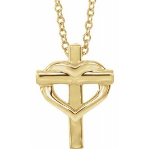 R45399 / Pendant / Sterling Silver / Polished / Youth Cross With Heart Pendant