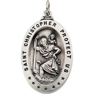 • Load image into Gallery viewer, Sterling Silver 29x20 mm St. Christopher Medal