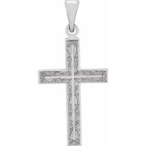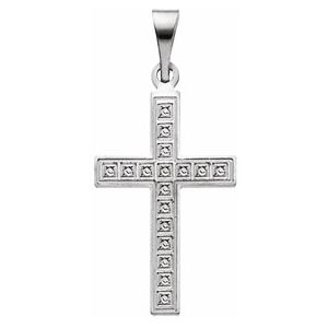 14K White 13.5x9.4 mm Beaded Cross Pendant