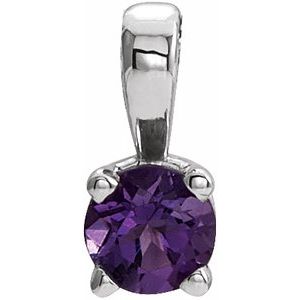 Sterling Silver 3 mm Round Imitation Amethyst Birthstone Pendant
