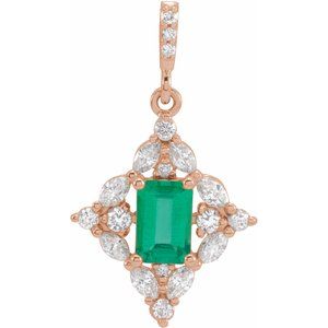 14K Rose Emerald & 3/8 CTW Diamond Pendant