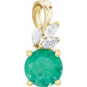 14K Yellow Emerald & 1/4 CTW Diamond Pendant