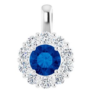 14K White Blue Sapphire & 1/2 CTW Diamond Pendant