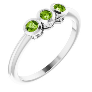Sterling Silver Peridot Three-Stone Bezel-Set Ring
