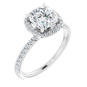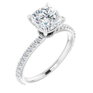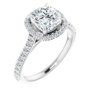 14K blanc 7 mm coussin Forever One, Moissanite & 1/3 CTW diamant bague de fiançailles