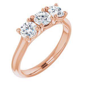 Montage de la bande d'anniversaire ronde à trois pierres de 4,1 mm en rose 14K