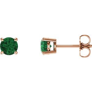 Boucles d'oreilles rondes en émeraude rose 14K 5 mm