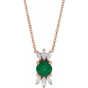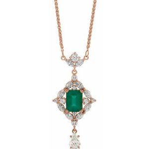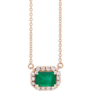 Collier émeraude 14K rose et diamant 1/3 CTW 16-18 "