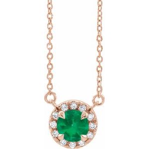Collier émeraude 14K rose et diamant 3/8 CTW 16-18 "