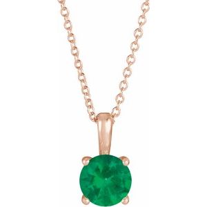 Collier Solitaire Emeraude Rose 14K 16-18 "