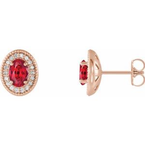 Boucles d'oreilles halo de style rubis rose 14K et diamant 1/8 CTW