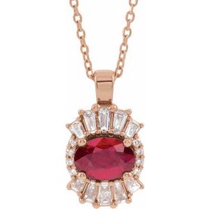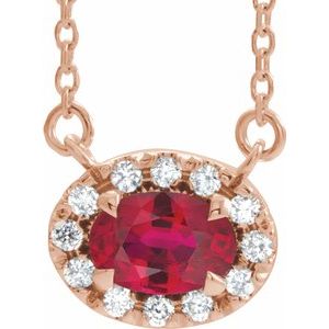 Collier rubis rose 14K et diamant 1/18 CTW 16-18 "