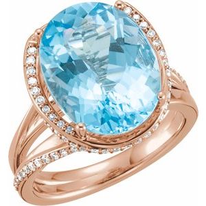 Bague en spirale rose suisse avec topaze bleu 14K et diamant 1/2 CTW