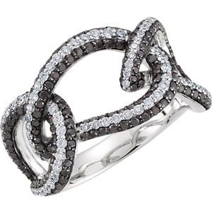 Bague entrelacée en diamant blanc et noir 1 5/8 CTW 14K