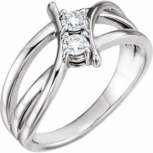 Bague à deux pierres en or blanc 14 carats et 1 diamant CTW