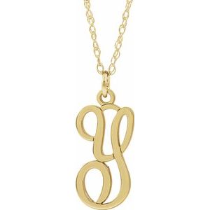 87090 / 14K Rose Gold-Plated Sterling Silver / Y / 16-18 In / Polished / Script Initial Necklace