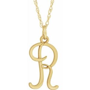 87090 / 14K Yellow Gold-Plated Sterling Silver / R / 16-18 In / Polished / Script Initial Necklace