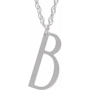 Sterling Silver Block Initial B 16-18" Necklace with Brush Finish