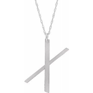87091 / Necklace / Sterling Silver / X / 20 Mm / 16-18 In / Polished / Block Initial Necklace With Brush Finish