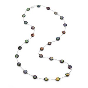 Sterling Silver Freshwater Cultured Black Coin Pearl 38" Necklace