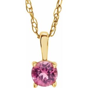 14K Yellow 3 mm Round October Imitation Pink Tourmaline Youth Birthstone 14" Necklace