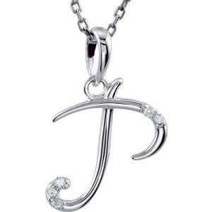 Sterling Silver .03 CTW Diamond Initial T 18" Necklace